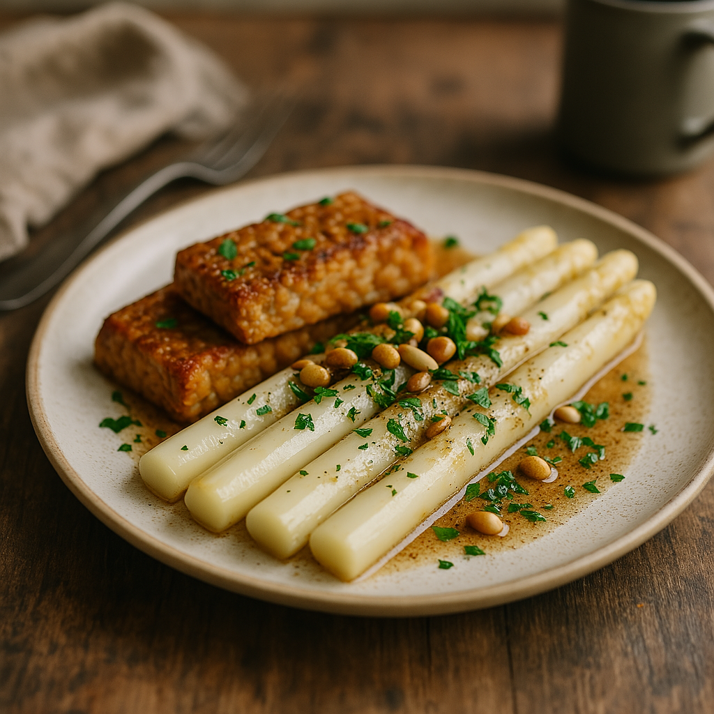 weißer Spargel mit Tempeh